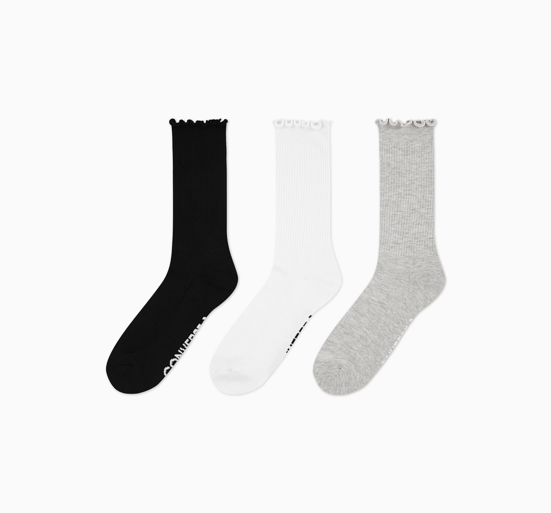 Tenişi joși, înalți, bocanci — orice ai purta, completează-ți look-ul cu aceste șosete crew cu finisaj ondulat la manșetă.
