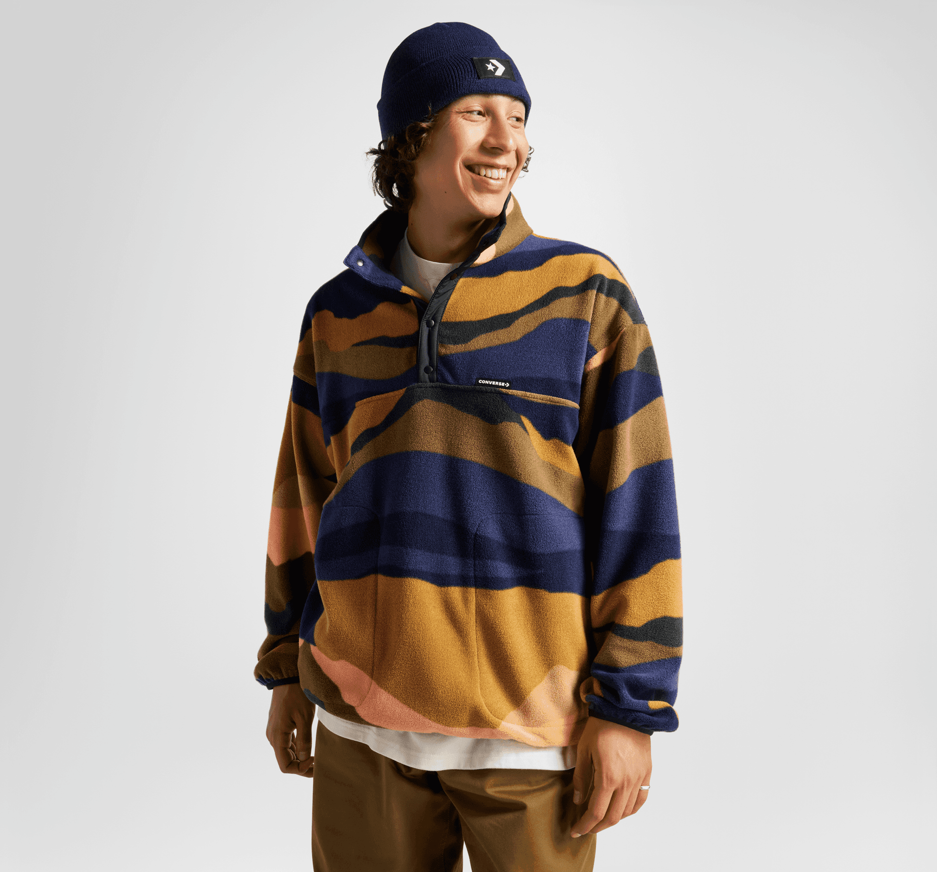 Această bluză din fleece, inspirată de peisajele montane, se mândrește cu un stil de top, fără a sacrifica căldu Legătura elastică de la mâneci și de la tivul inferior rețin căldura, în timp ce buzunarele laterale s-au născut pregătite pentru a te ajuta să-ți păstrezi mâinile plăcute și calde.