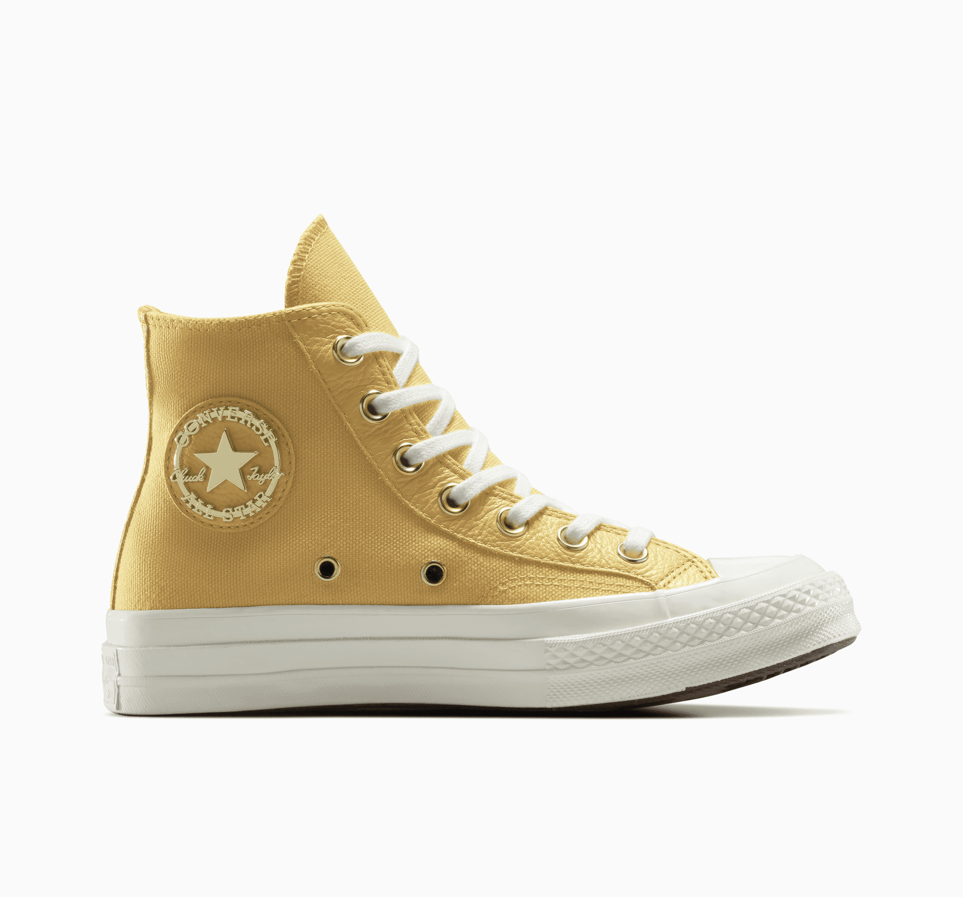 - Petic de gleznă Chuck Taylor din piele, cu suprapuneri metalice aurii