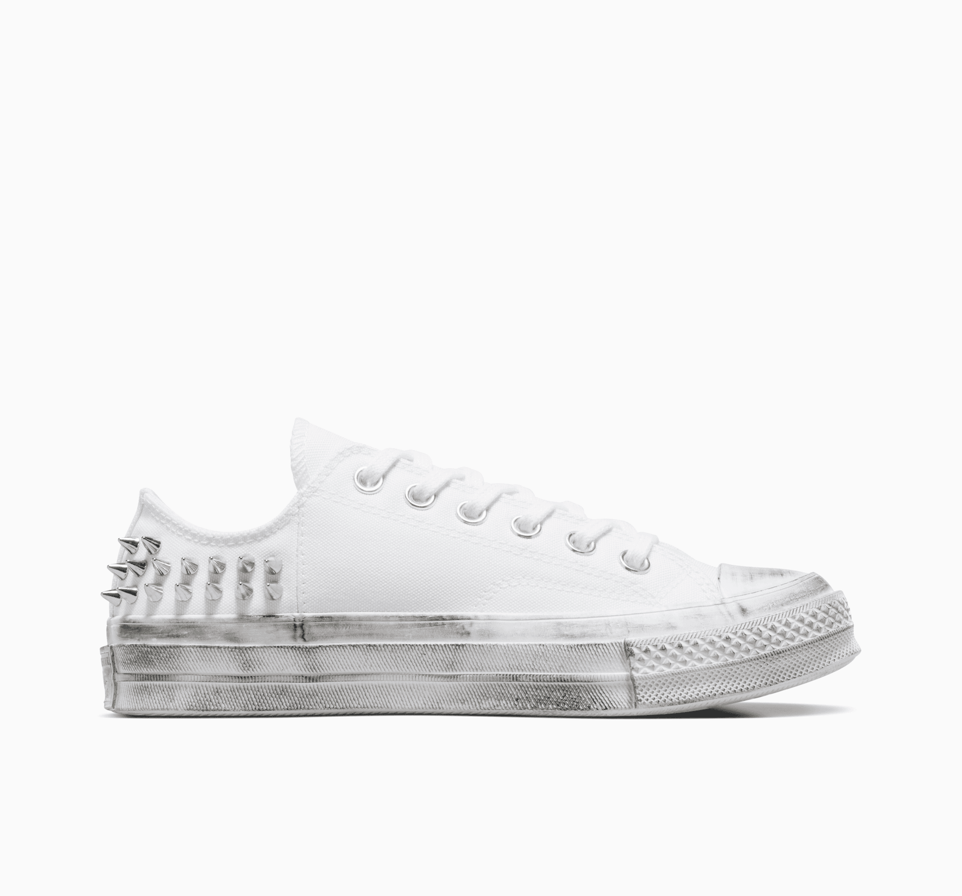 Eliberează-ți latura punk în stilul Chuck Taylor. Râvnitul model iconic jos primește o actualizare atrăgătoare, cu ținte şi cauciuc lustruit, pentru un aspect spectaculos, direct din cutie.