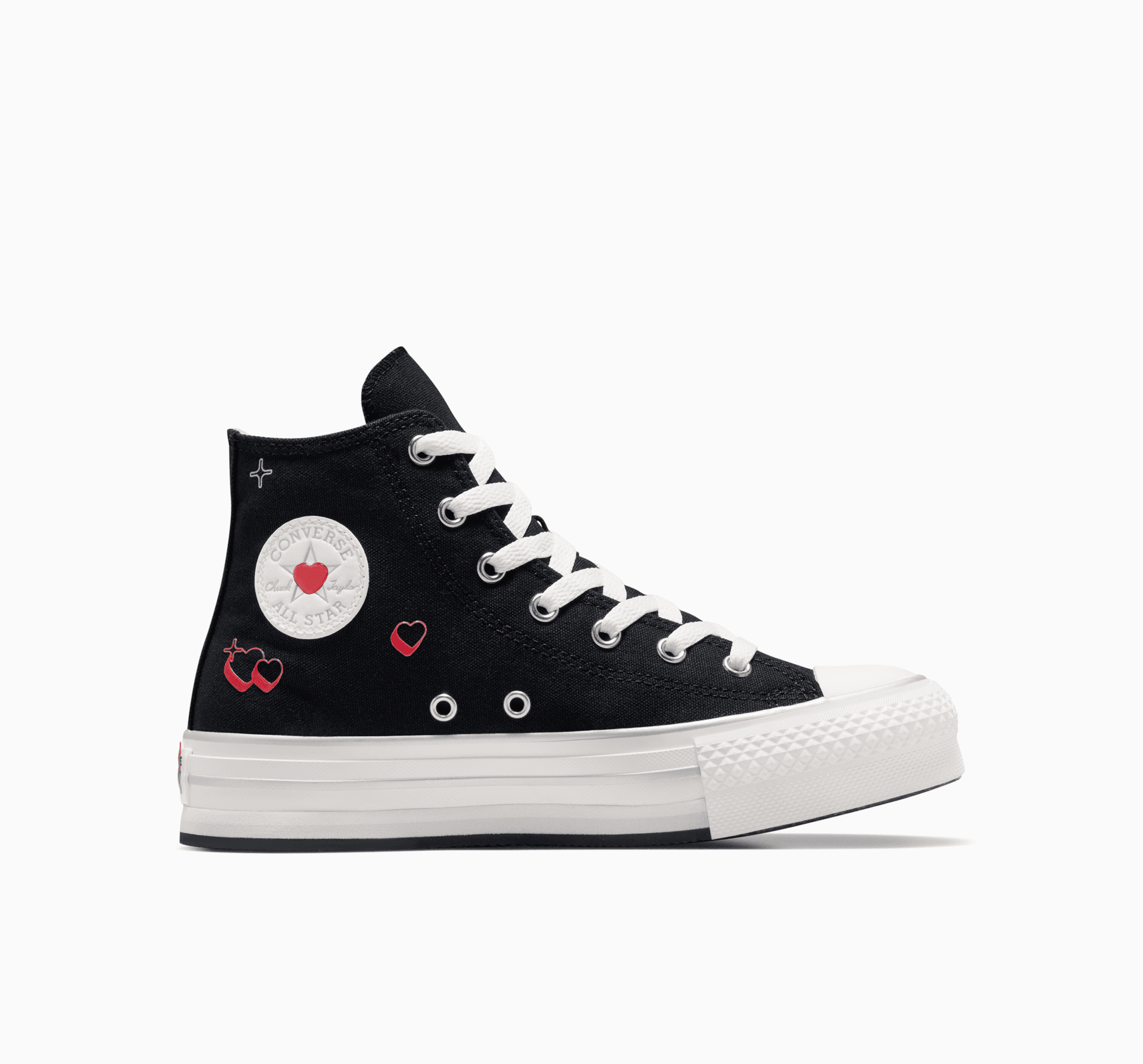 Trandafirii sunt roșii, violetele sunt albastre - fă din acești Chucks preferații tăi. Inimile minuscule și detaliile metalice te duc cu gândul la o scrisoare de dragoste din Y2K. În plus, există o inimă mică pe peticul gleznei, pentru a fi și mai adorabili.