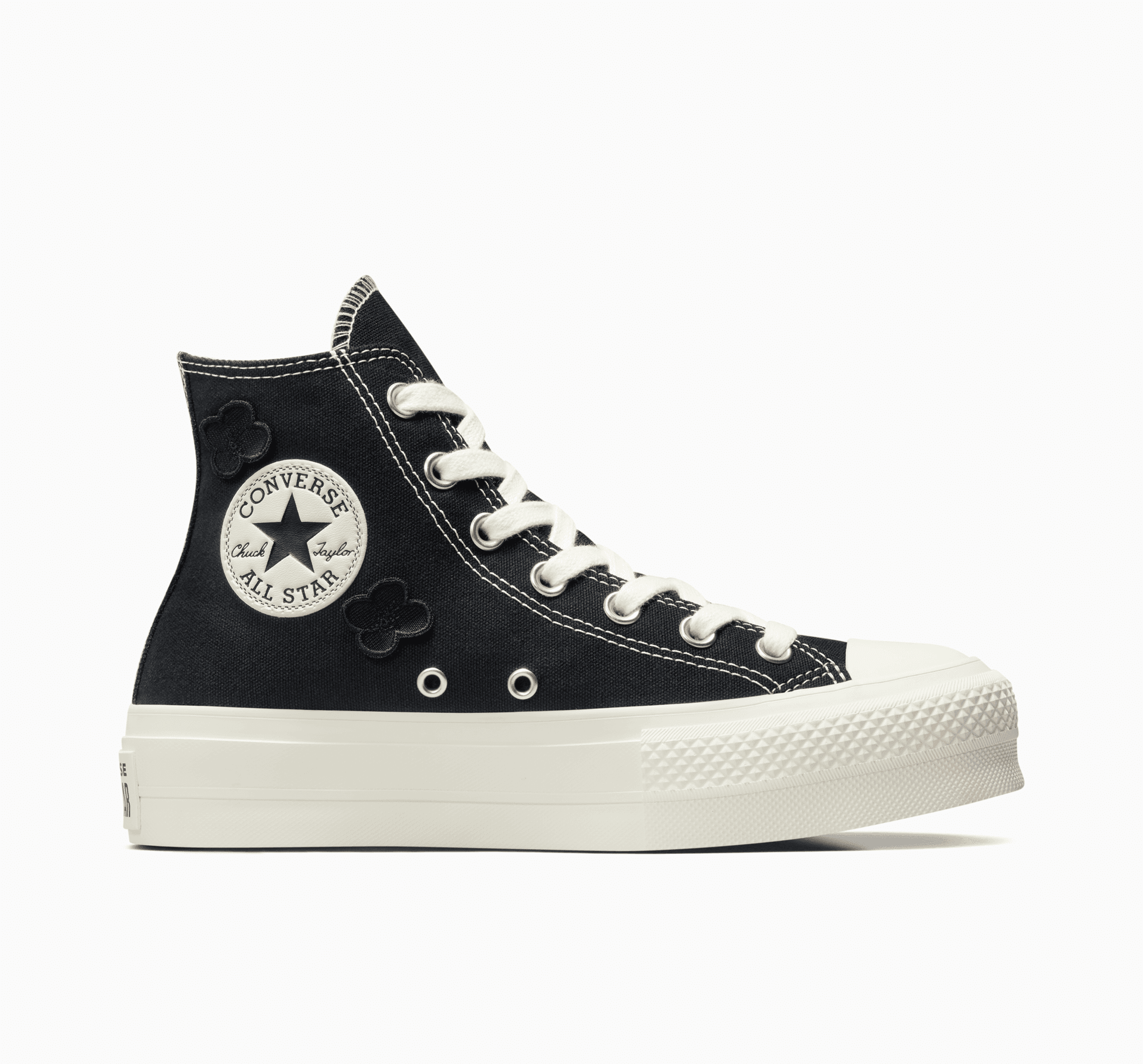 Modelul emblematic All Star Lift își face treaba cu o amortizare uşoară și o talpă exterioară cu platformă îndrăzneață. Această iterație aduce o modificare delicată modelului clasic, cu flori 3D brodate care înfrumusețează orice ținuta.