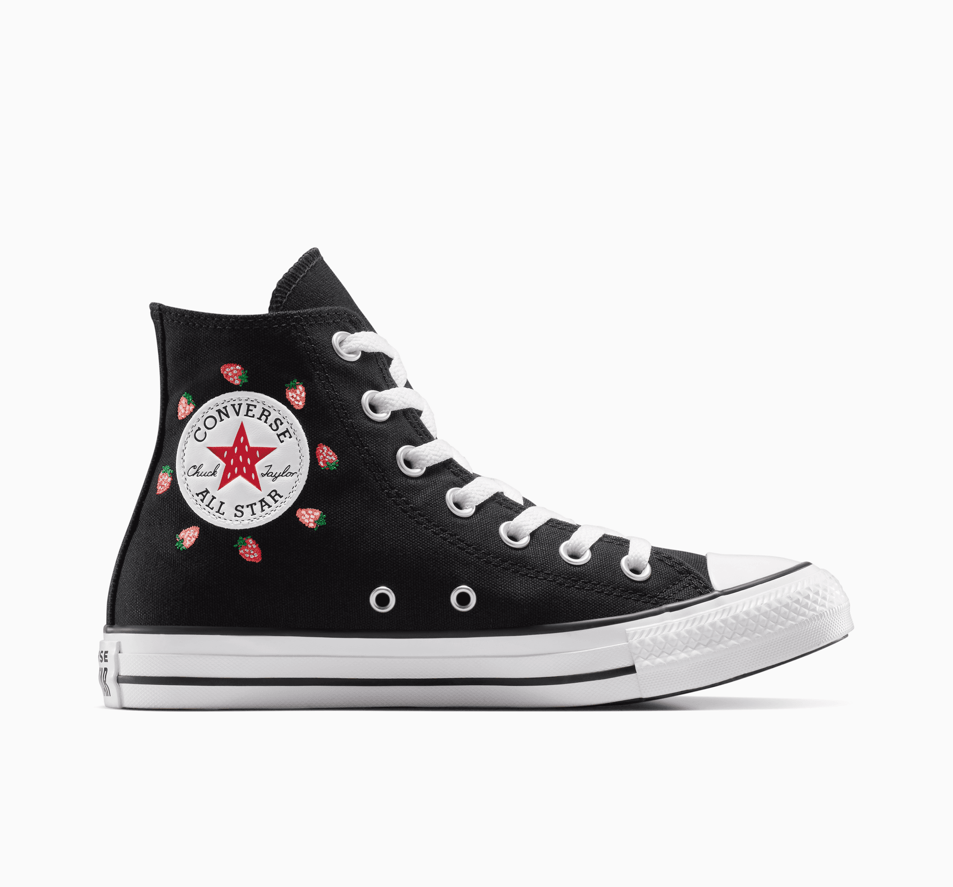 Îndulcește-ți look-ul de zi cu zi cu aceste Chuck-uri înalte cu căpșuni. Inspirați de fructe delicioase și suculente, acești pantofi vor fura cu siguranță privirile - potrivite pentru orice moment: cumpărături, festival sau plimbare cu prietenii.