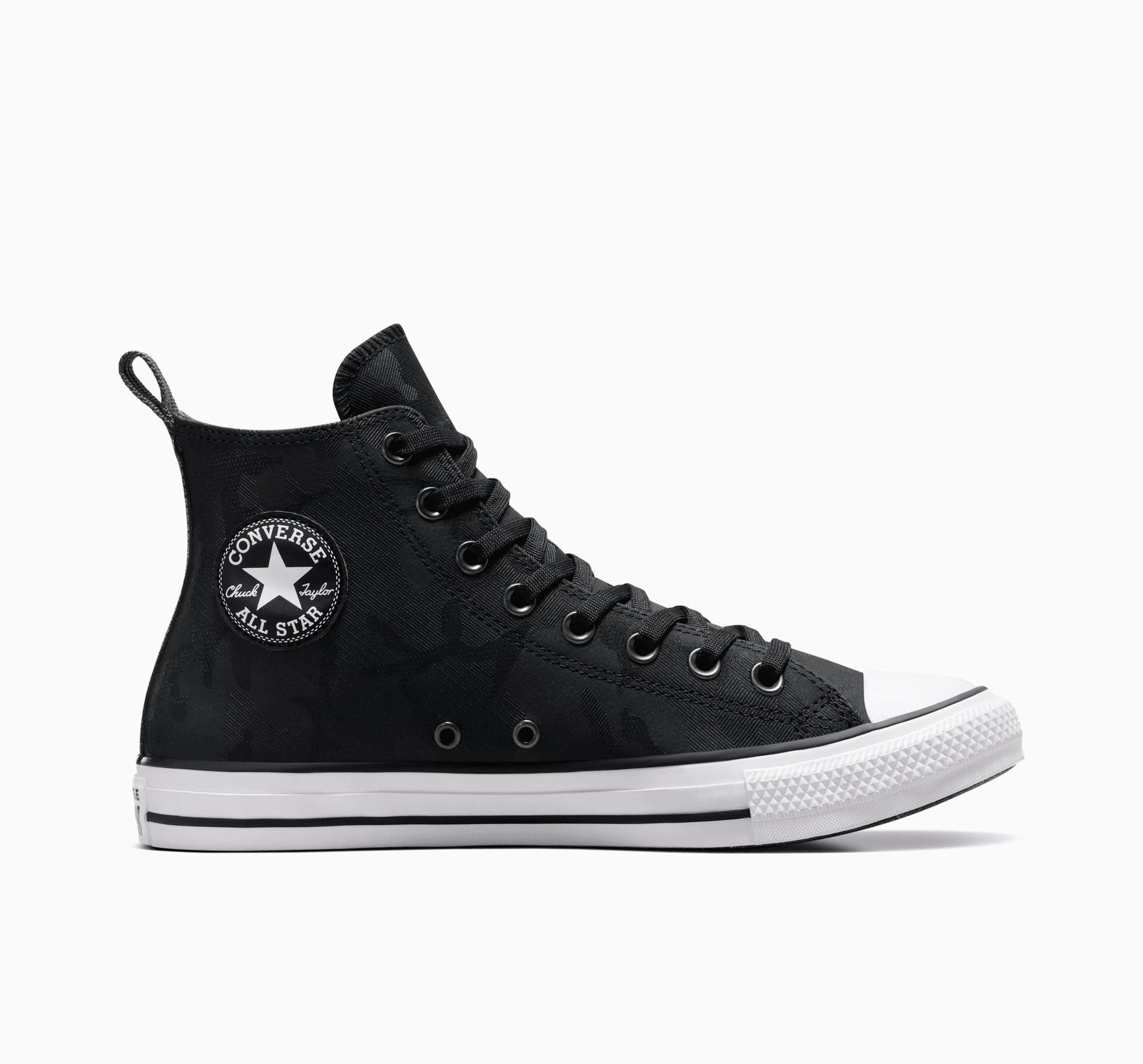 - Emblema iconică Chuck Taylor și plăcuța cu logo-ul All Star, cu o etichetă TecTuff la călcâi