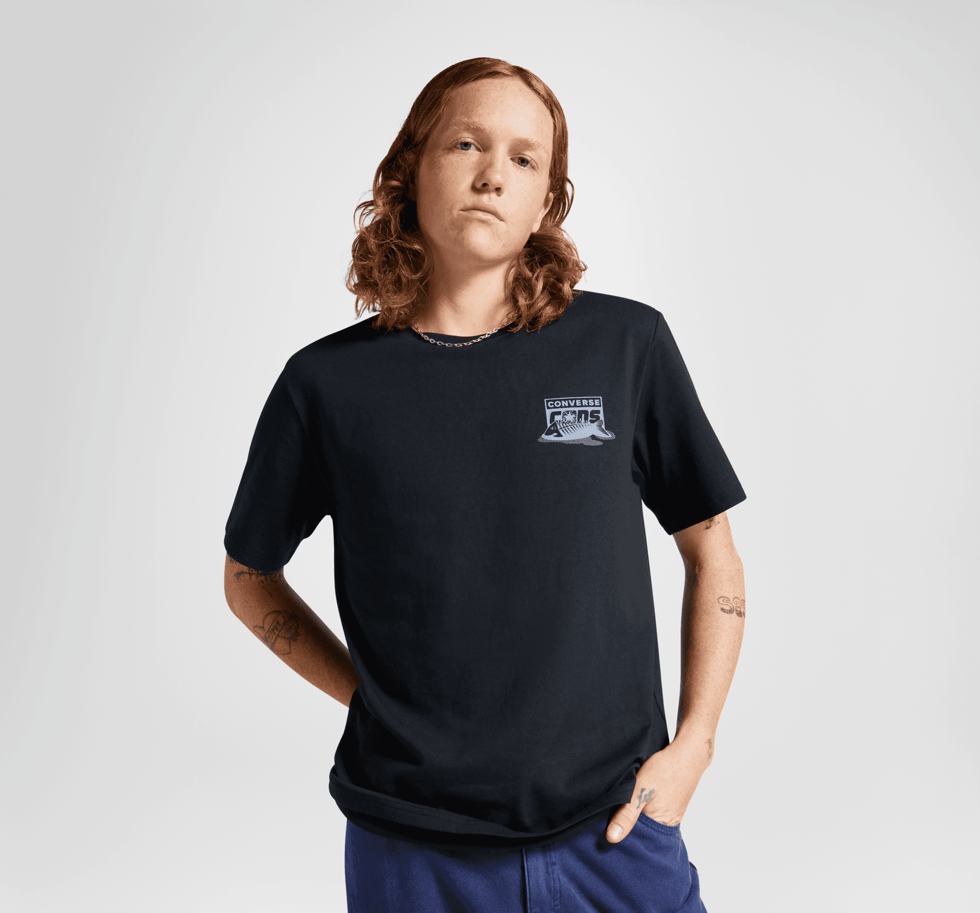 Un pește rebel pe un tricou CONS - pentru când ești de neoprit la skate park.