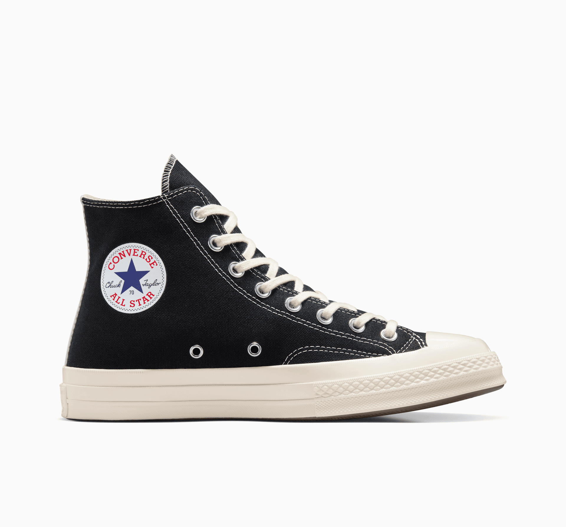 The one heart that started it all: Our iconic collaboration with PLAY Comme des Garçons returns with an ode to the OG Chucks that launched the partnership in 2009. On a minimalist Chuck 70, the throwback design features a single heart logo on the canvas while keeping classic Converse details untouched. It only takes one heart to make a splash.