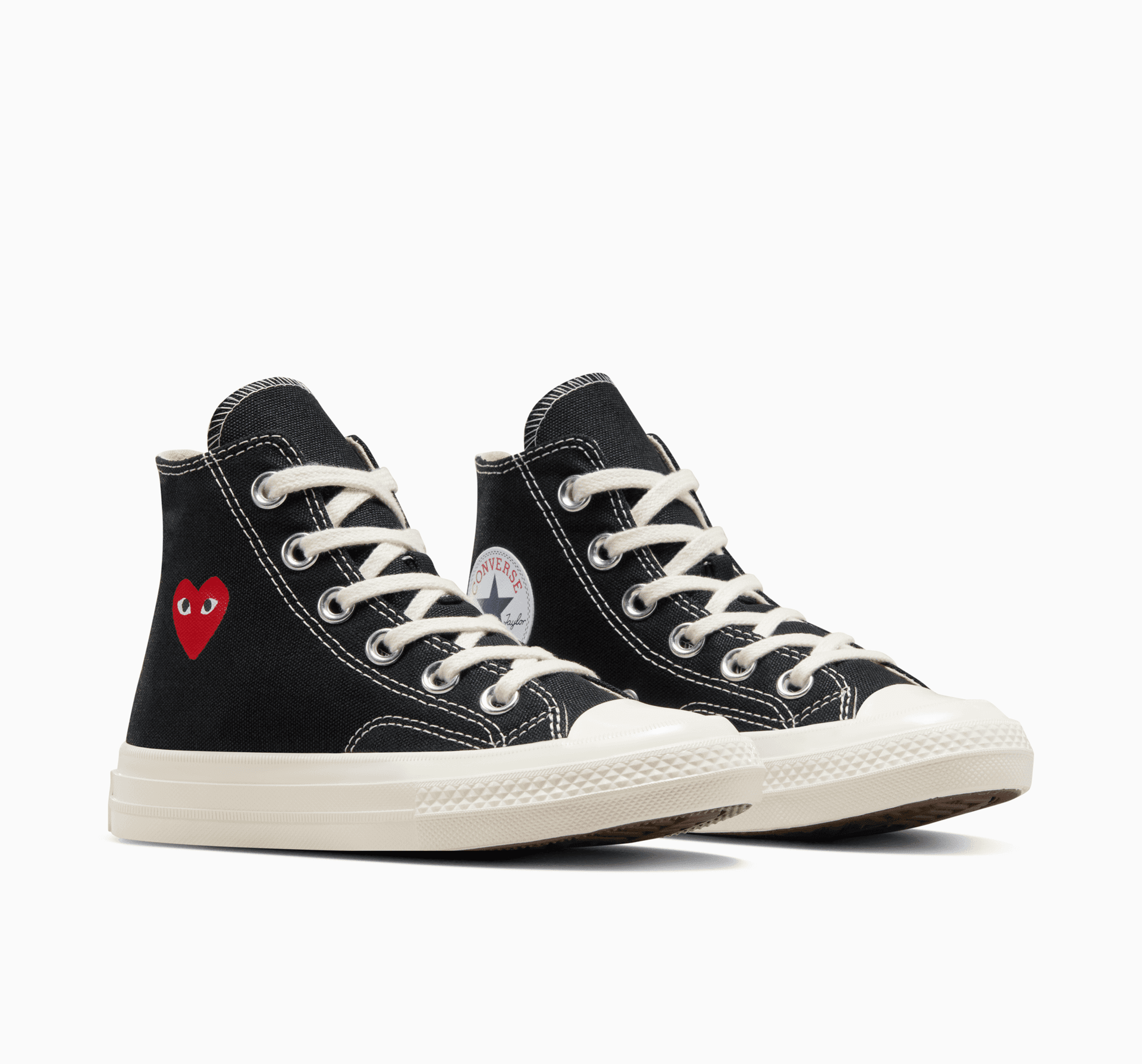The one heart that started it all: Our iconic partnership with PLAY Comme des Garçons returns with an ode to the OG Chucks that launched the partnership in 2009 and the collab’s first-ever kids’ sizes. On a minimalist Chuck 70, the throwback design features a single heart logo on the canvas while keeping classic Converse details untouched. It only takes one heart to make a splash.
