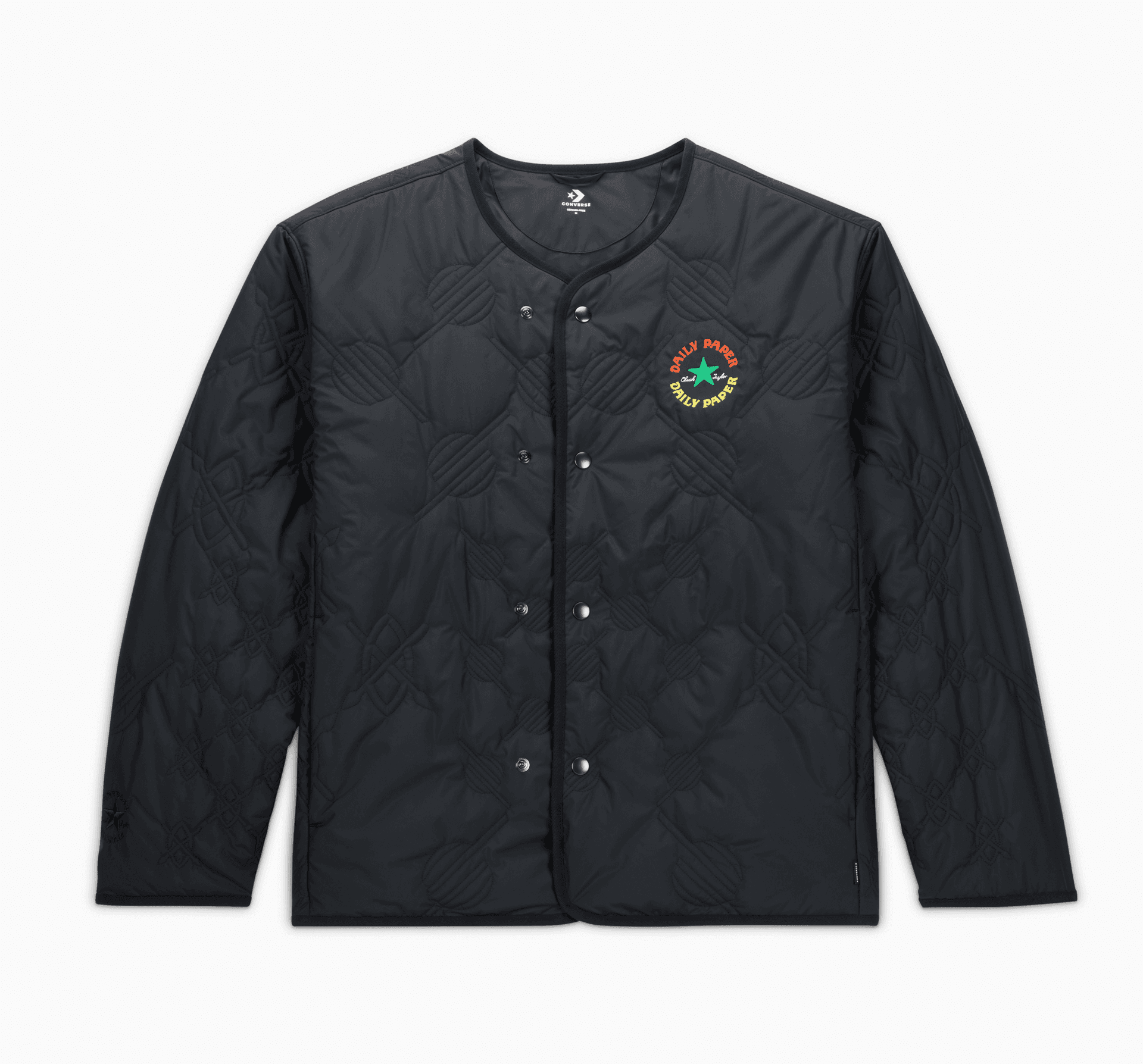 Daily Paper își subliniază amestecul detaliat al stilului contemporan stradal și al culturii africane cu o jachetă Malden Liner în ediție limitată. Designul jachetei are un imprimeu matlasat integral cu logo Daily Paper și logo Chuck patch brodat personalizat în culori Pan-African.