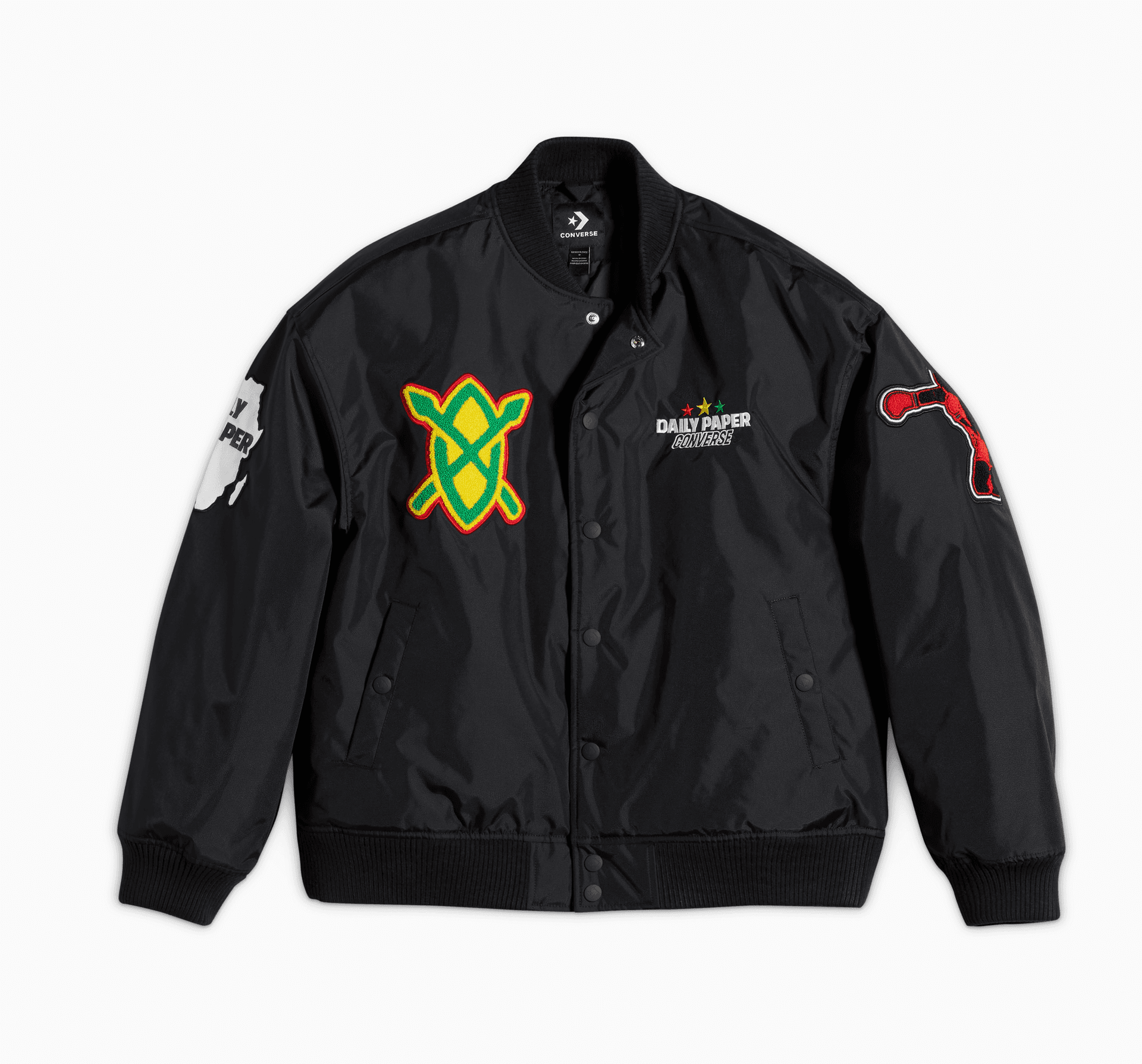 Daily Paper unește cultura și stilul cu o jachetă în ediție limitată, ridicându-și abordarea axată pe detalii și estetica inspirată din Africa prin patch-uri îndrăznețe, culori pan-africane și broderii cusute cu satin.