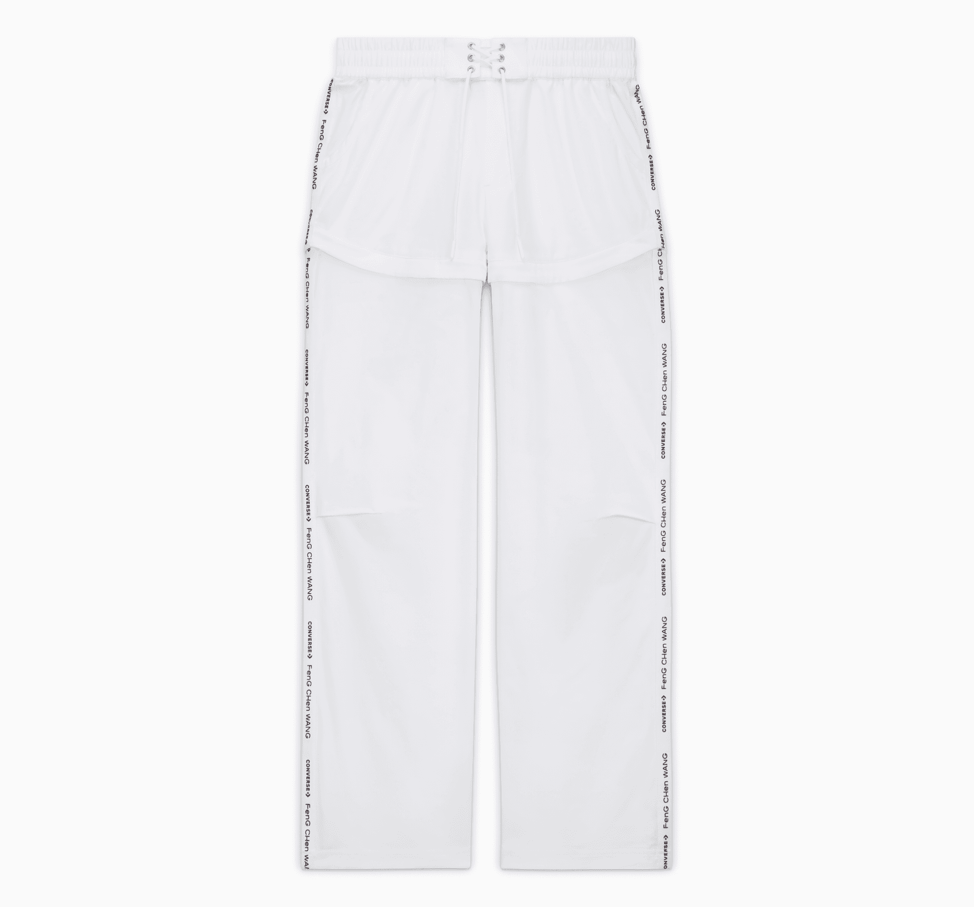 Influentul designer chinez Feng Chen Wang lansează o nouă colecție de îmbrăcăminte Converse, reinterpretând hainele clasice prin prisma stilului ei caracteristic. Abordarea sa unică transformă elementele de bază moderne în piese distinctive, specifice. Acest pantalon cargo 2 în 1 în ediție limitată se deosebește prin elemente detașabile cu fermoar, inele metalice, buzunare mari, patch-uri contrastante pe partea laterală și cobranding imprimat în partea de jos a fiecărui picior.