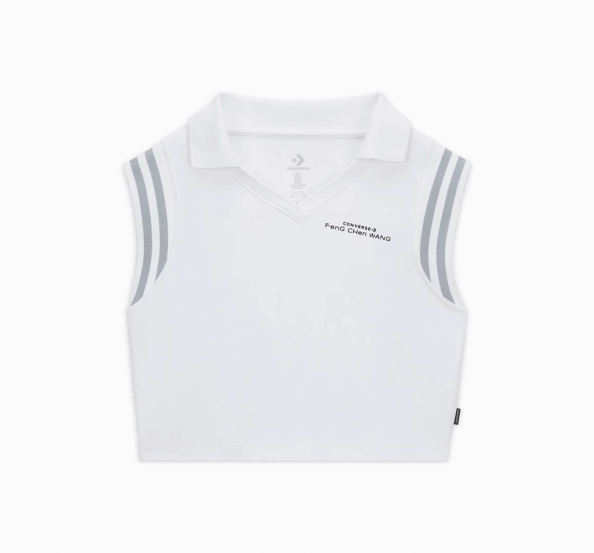 Influentul designer chinez Feng Chen Wang a revenit cu o nouă colecție de îmbrăcăminte Converse, reinterpretând articolele de îmbrăcăminte clasice printr-un stil sportiv subversiv. Abordarea sa deconstructivă transformă articolele moderne de bază în piese unice distinctive. Această ediție limitată oferă un stil neașteptat fără mânec al unui top în stil polo.