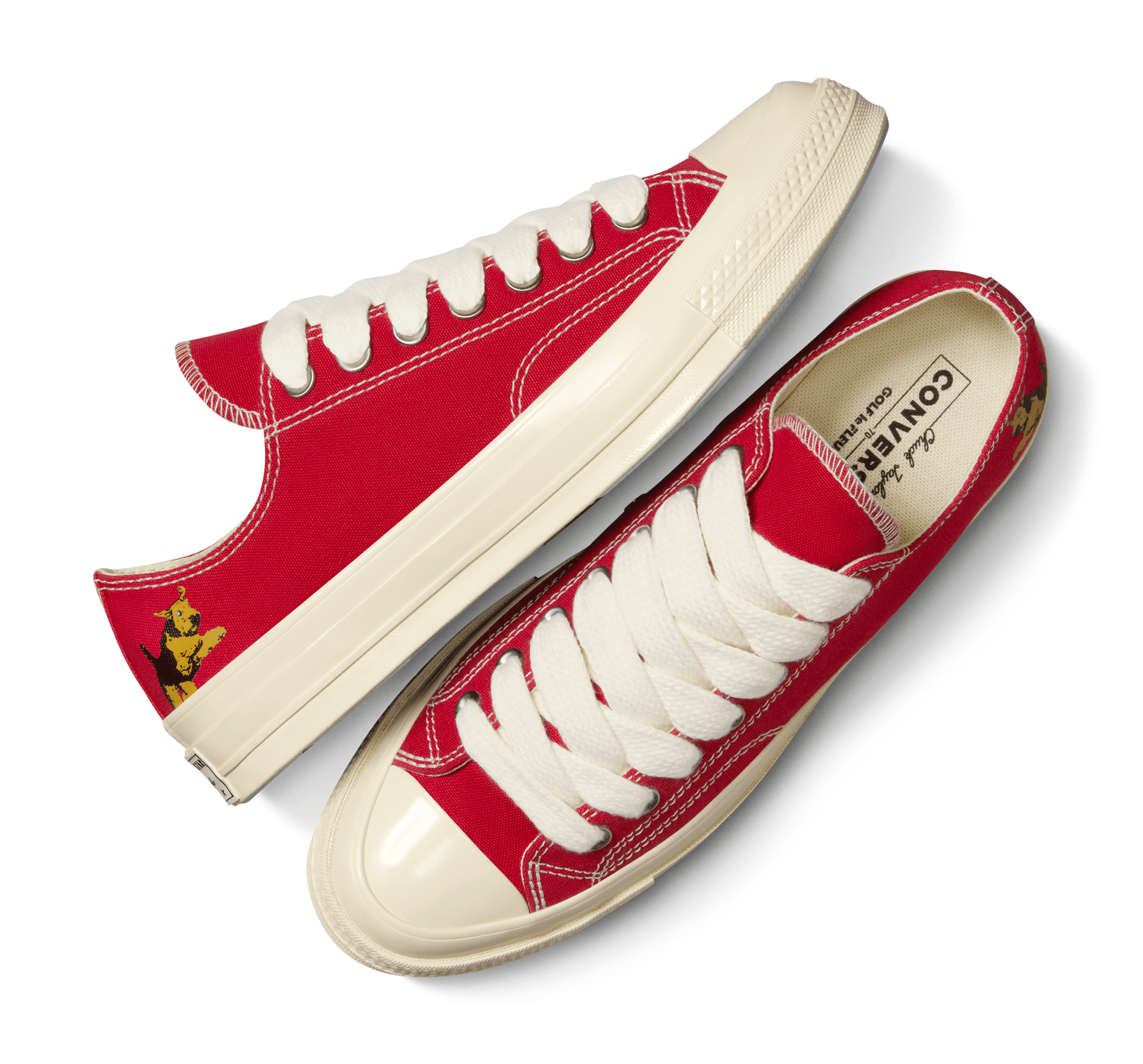 Pentru cea mai recentă colaborare cu GOLF le FLEUR*, mascota brandului, Darryl, își pune amprenta pe modelul emblematic Chuck 70. Designul minimalist este disponibil în cinci culori din paleta distinctivă GOLF le FLEUR*, fiecare pereche fiind decorată cu un grafic subtil cu Darryl pe partea superioară și un desen îndrăzneț cu un bellhop pe talpa exterioară. Clasic. Nonconformist. Elevat. Darryl Chuck 70 — o creație semnată de Tyler, The Creator și GOLF le FLEUR*.