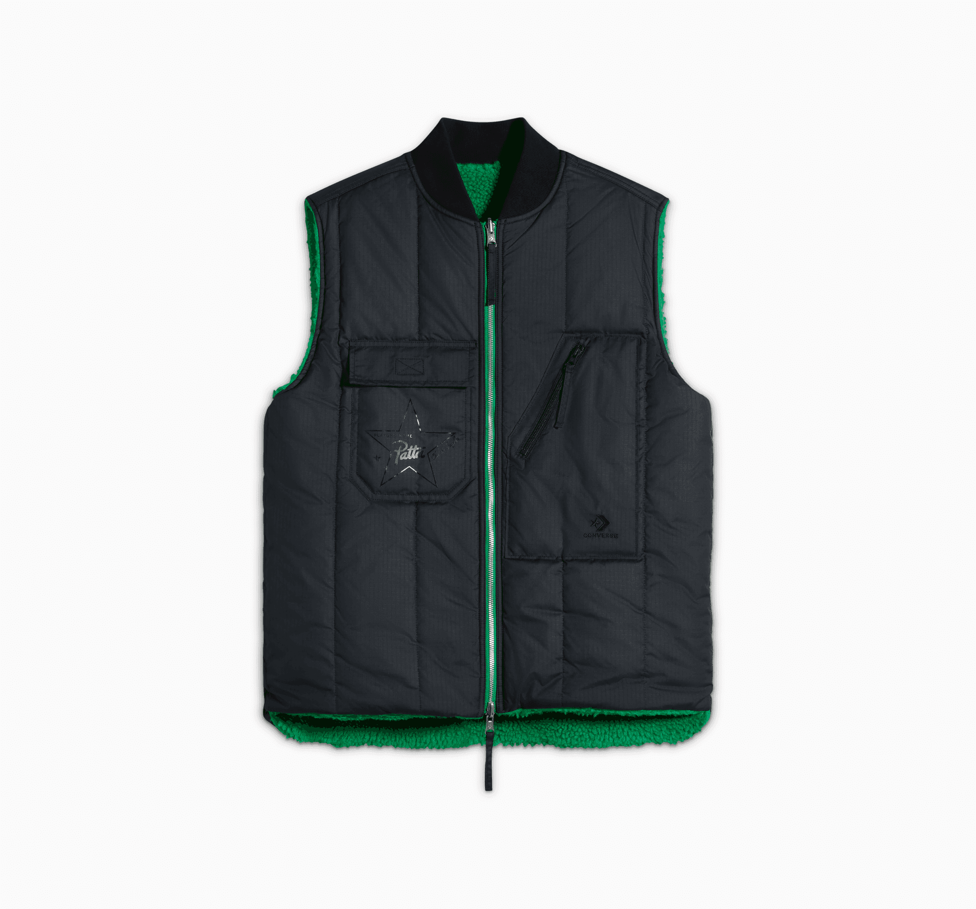 Amsterdam’s Patta marks two decades of being a curated streetwear brand with a limited-edition reversible vest. The celebratory design combines iconic Chuck Taylor elements with bold Patta patches stitched across the back.