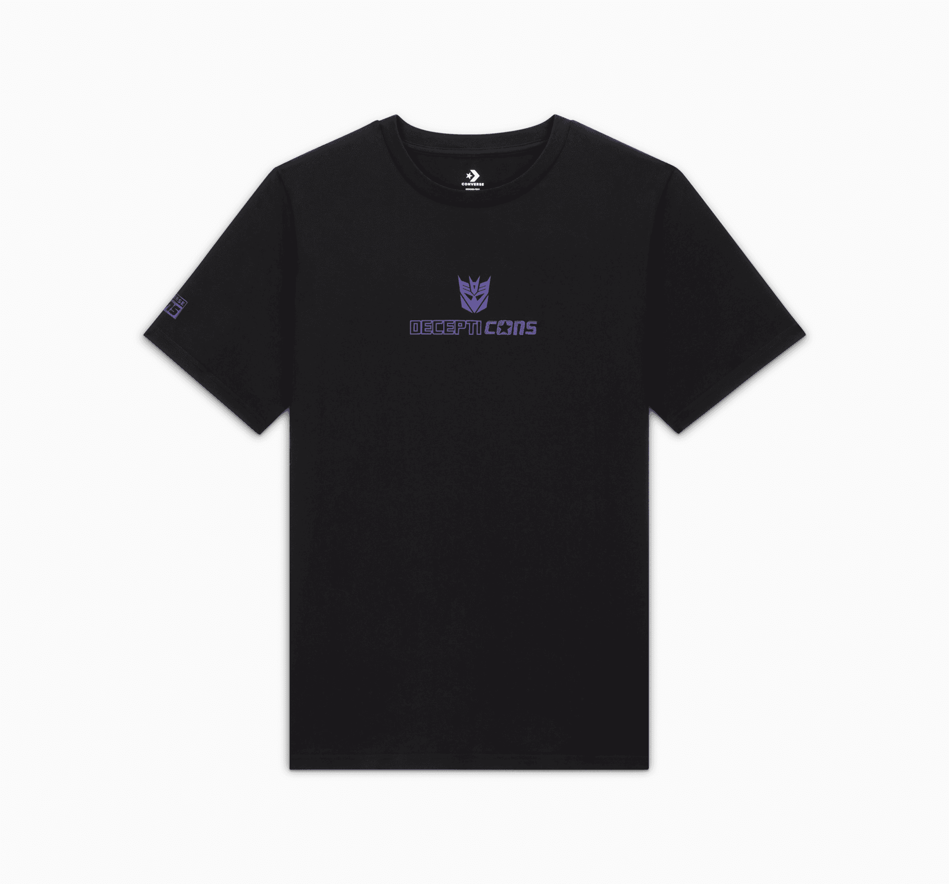 Sărbătoriți 40 de ani de Transformers cu un tricou Converse în ediție limitată, cu o grafică îndrăzneață cu Megatron și cobranding personalizat Decepticons și Converse CONS pe față.