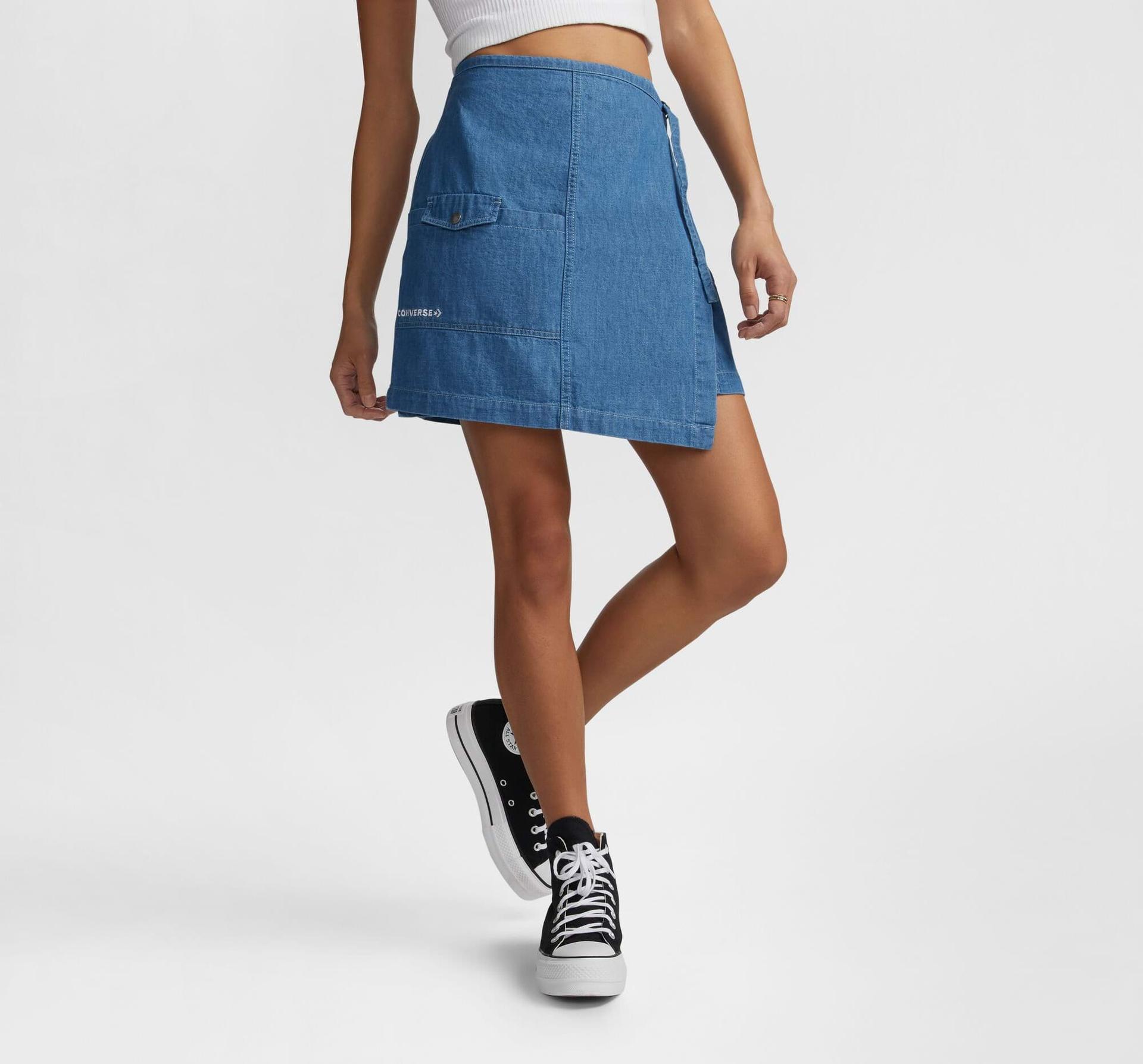 Všetko, čo od sukne chcete, bez zbytočností. Tento štýlový základný kúsok letného šatníka kombinuje ležérnu džínsovinu s módnym zavinovacím strihom. Praktické detaily, ako je zapínanie na pracku a niekoľko vreciek, sú funkčné bez toho, aby utrpel štýl.