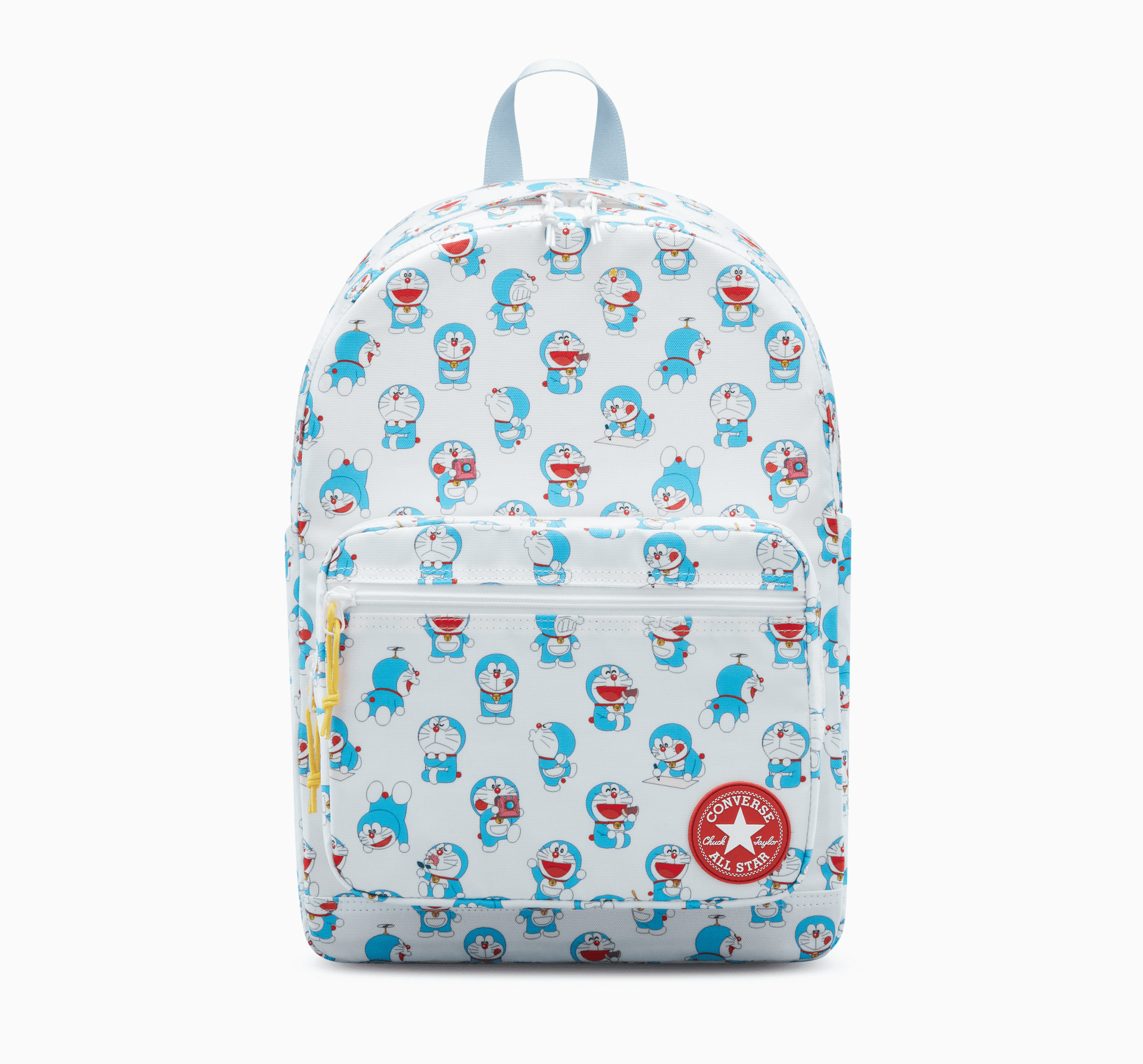 Doraemon Daze! Converse celebrates the beloved Japanese manga and anime series about a cat-type robot from the future with a limited-edition backpack. Pack your gadgets in your own 4D pack, featuring a bold all-over print highlighting Doraemon’s colorful expressions.
