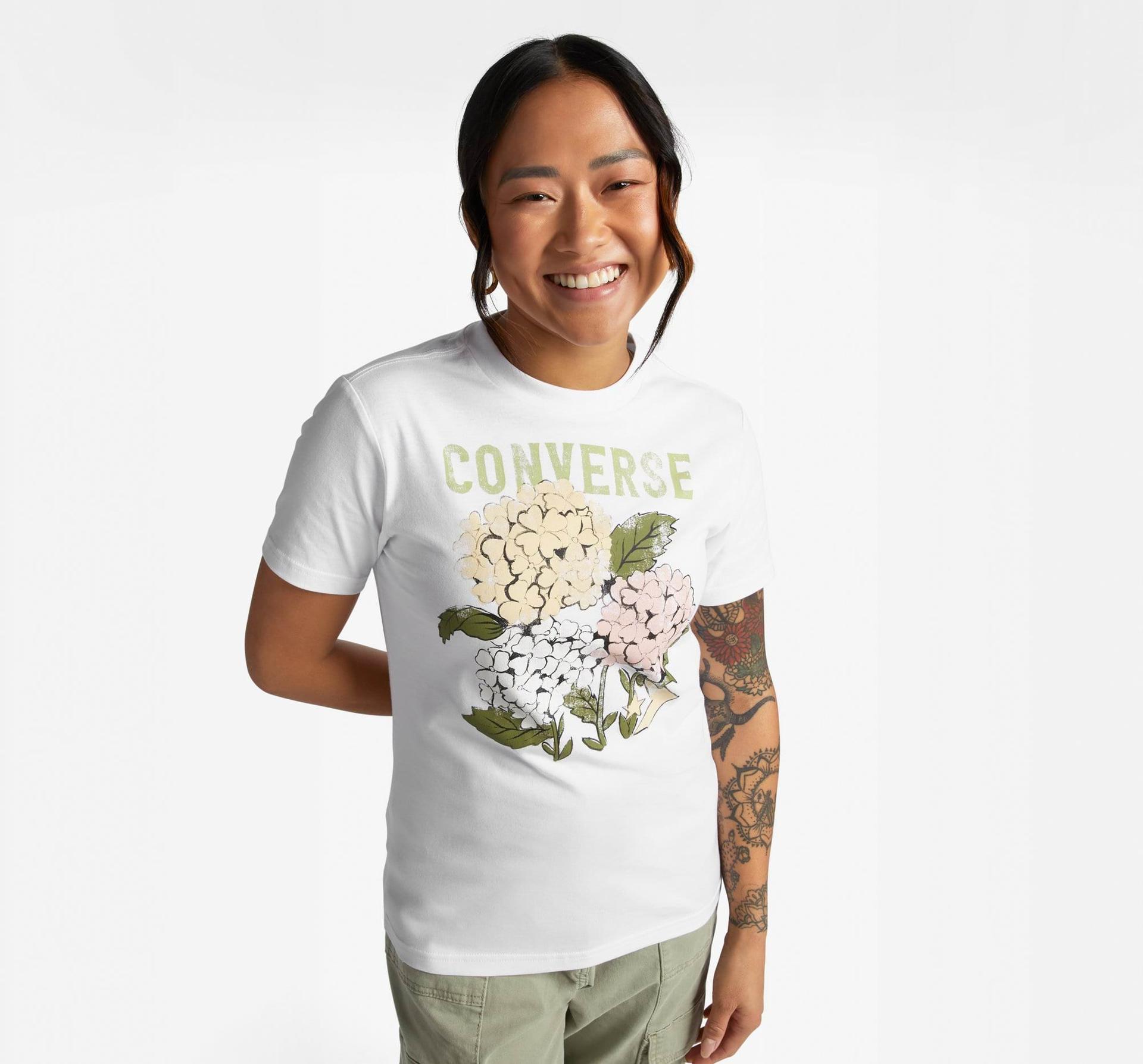 Păstrează-ți stilul în floare, sezon după sezon, cu acest tricou grafic floral. Confecționat din jerseu de bumbac moale și acoperit cu flori colorate, păstrează vie atmosfera de vară - chiar și atunci când temperaturile scad.