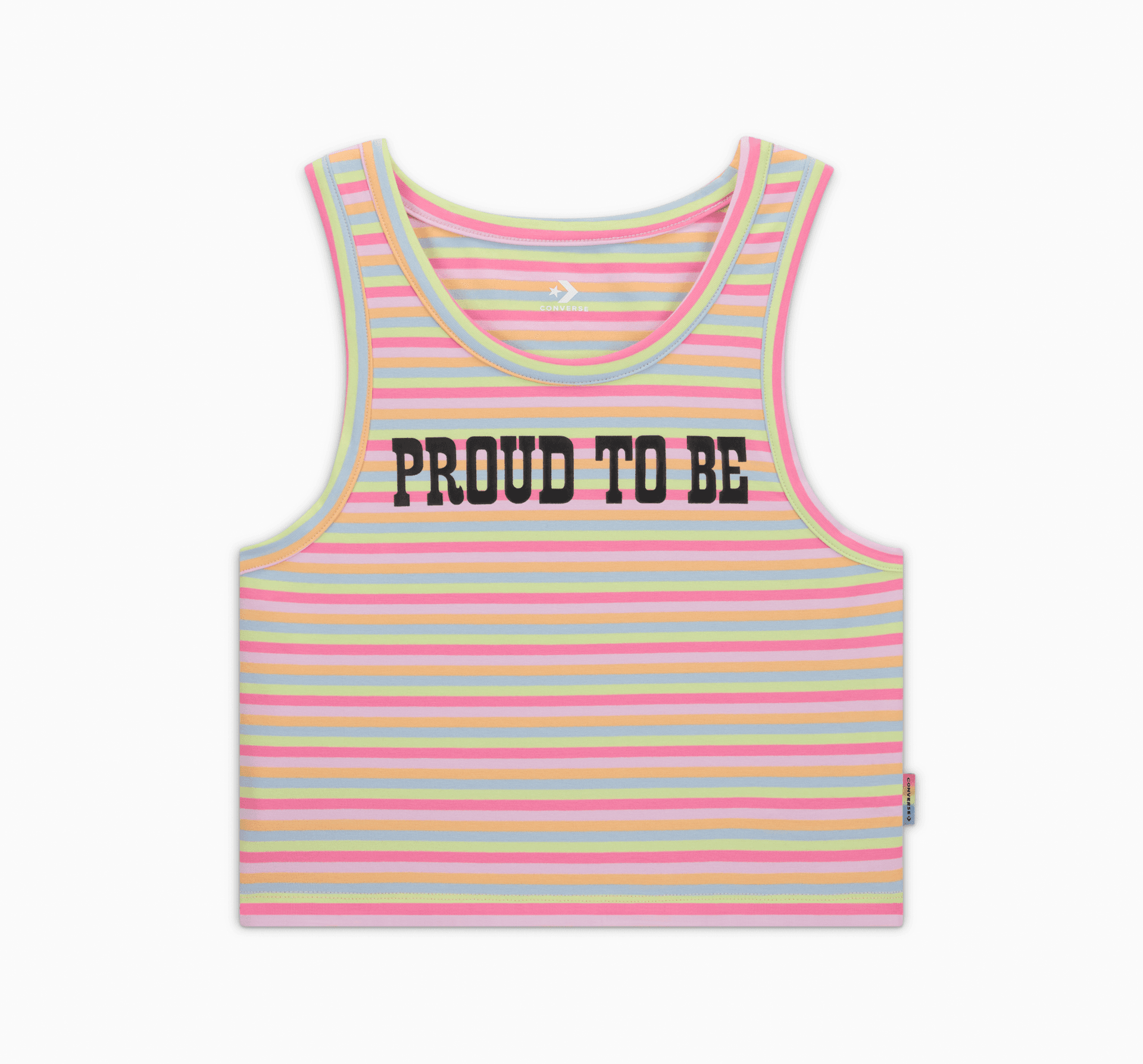 Topul crop Proud To Be celebrează spectrul vocal al comunității LGBTQIA+. Ca parte a colecției Converse Pride 2024, acest top crop unisex cu croială ajustată și design PROUD TO BE din cerneală de cauciuc pe un material ușor și elastic, radiază iubire de sine din toate unghiurile..