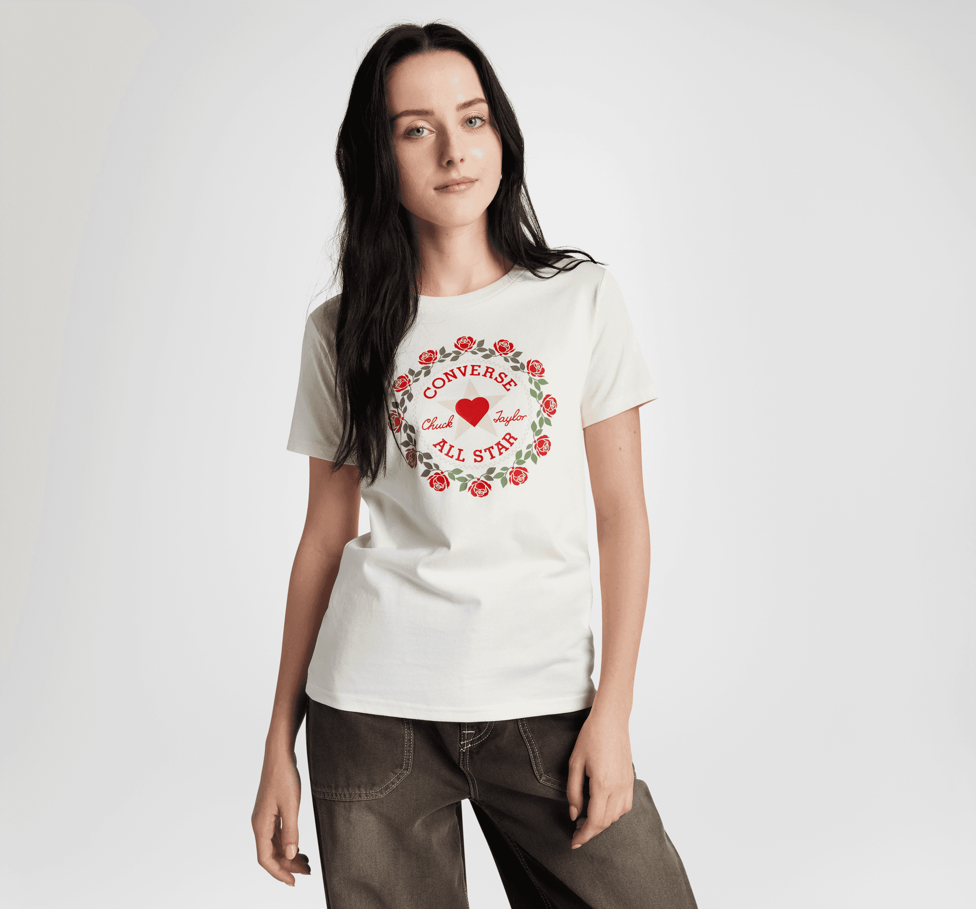 Grafica cu Chuck Taylor cu trandafiri și inimi adaugă o notă de romantism