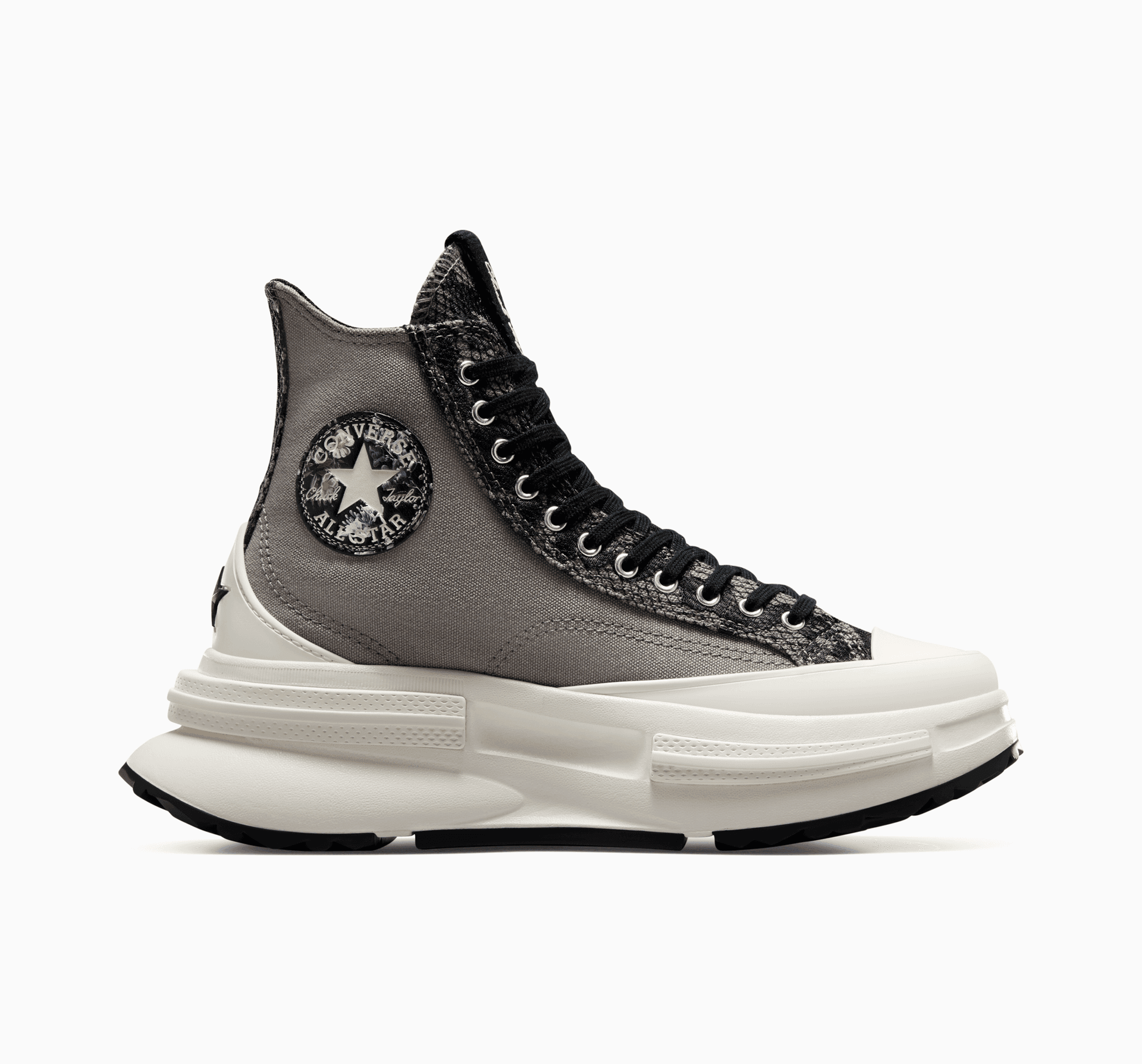 Exploatează-ți latura misterioasă cu high-tops, care se joacă de-a timiditatea. Dantela întunecată aduce îndrăzneala; floralele păstrează lucrurile delicate. În plus, o talpă exterioară elevată adaugă un plus de dramatism și o greutate redusă la fiecare pas.