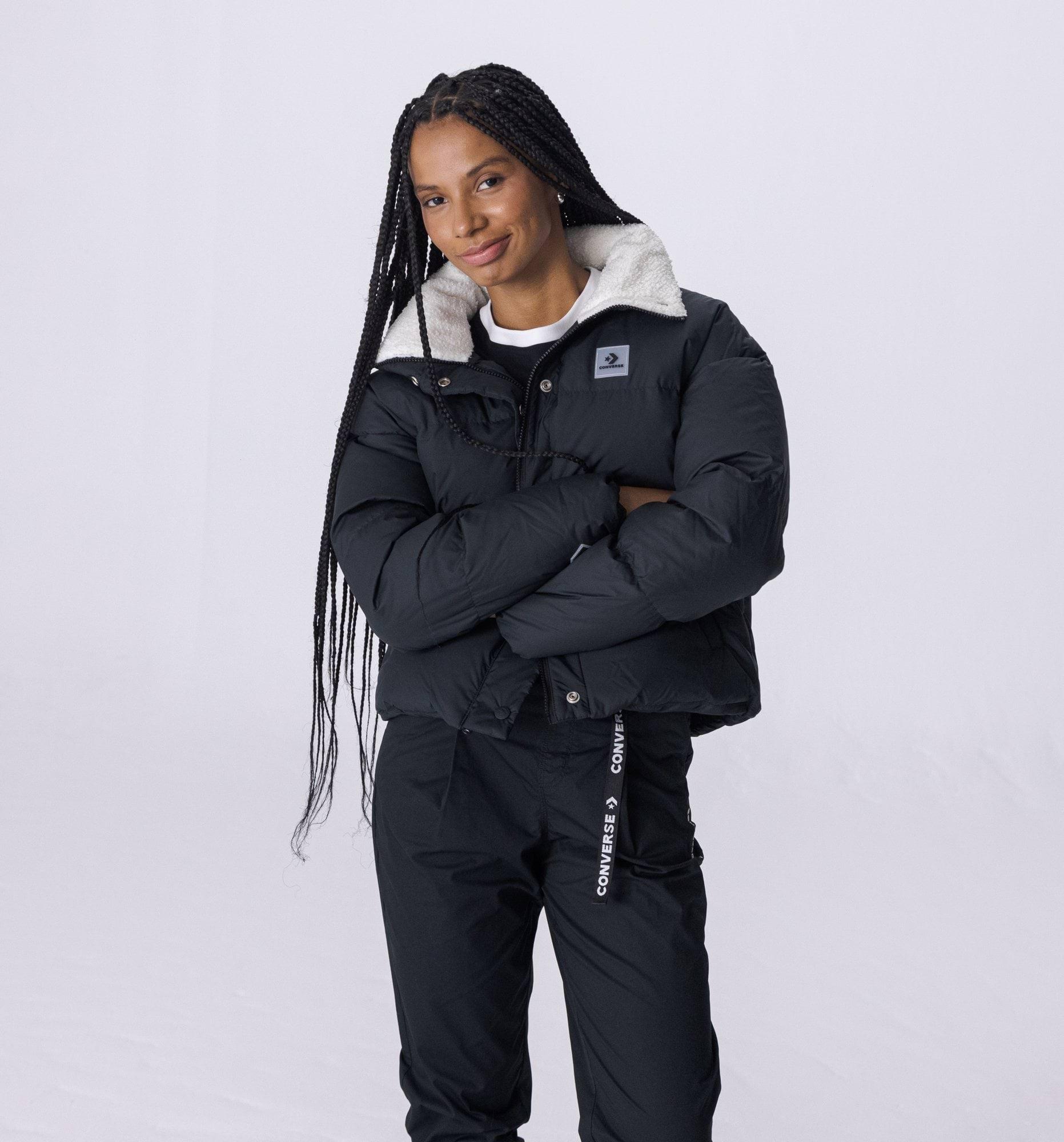 - Un guler căptușit cu sherpa pentru un aspect și o senzație confortabile