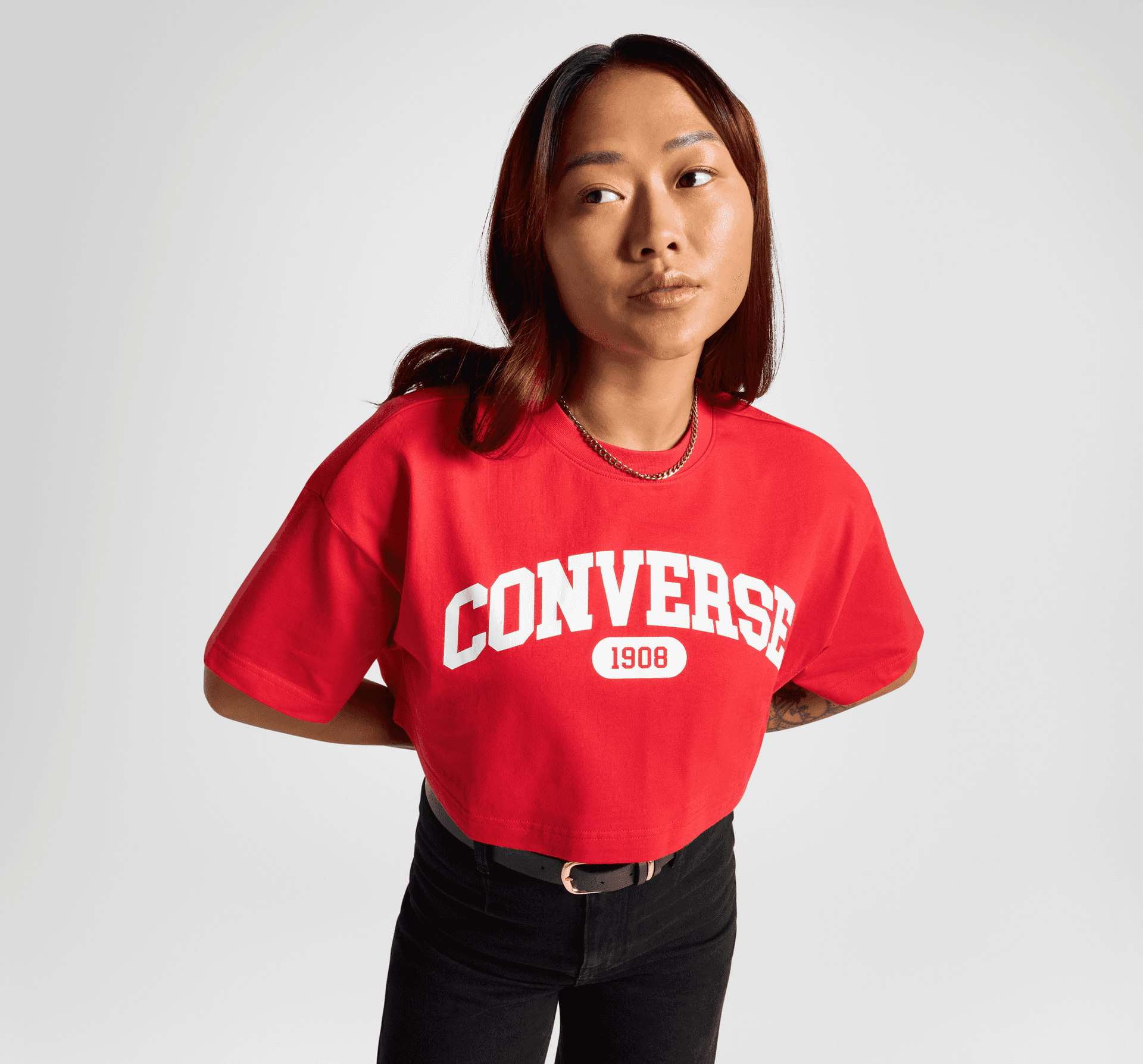 Acest tricou supradimensionat, cu o imagine grafică Converse 1908 în față, pe centru, look-ul tău se asortează perfect cu Chuck-urile tale clasice.