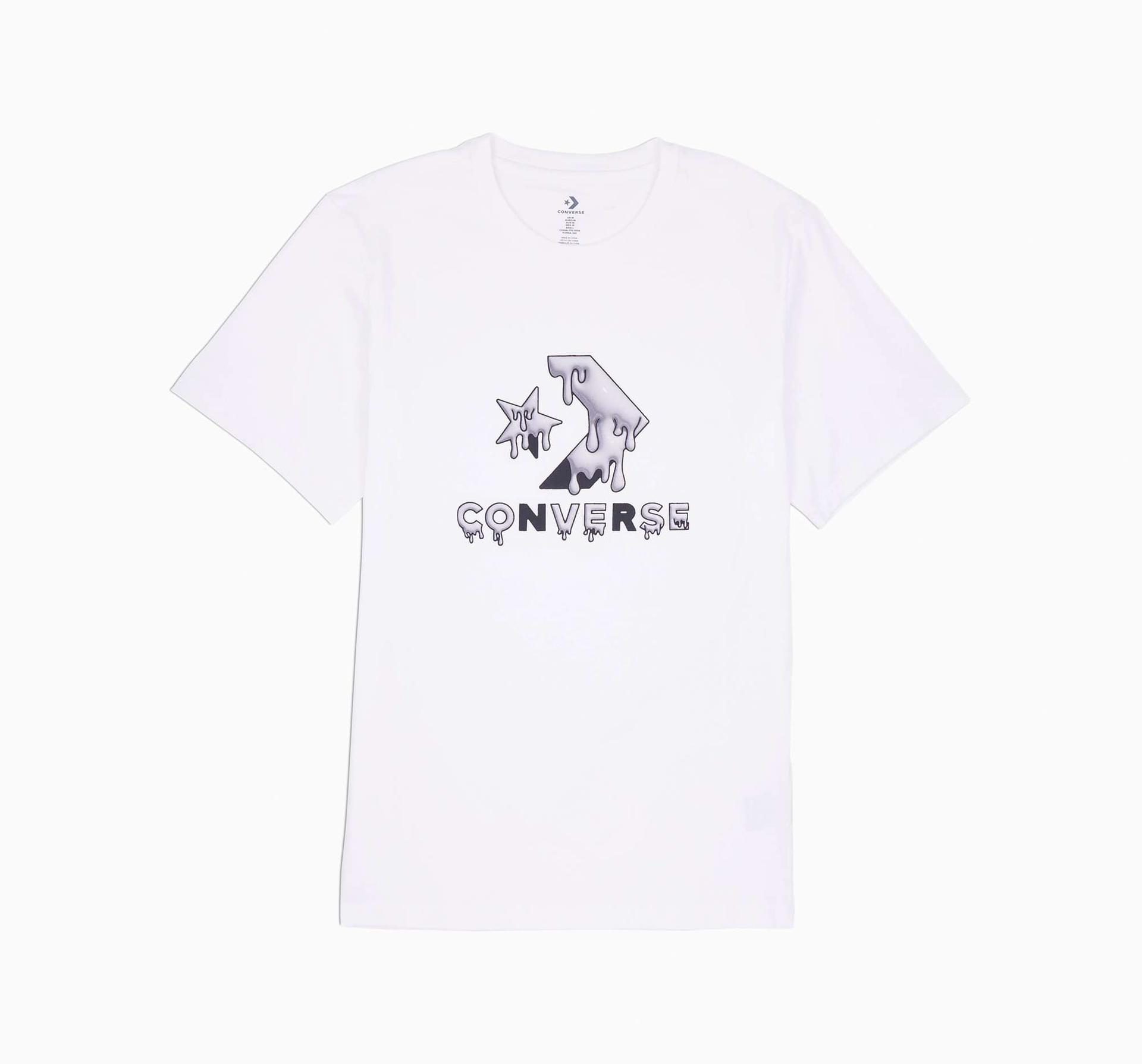 - Grafică Drippy Star Chevron pe un tricou în culori ușor de împerecheat, astfel încât întreaga ta garderobă să poată străluci.